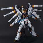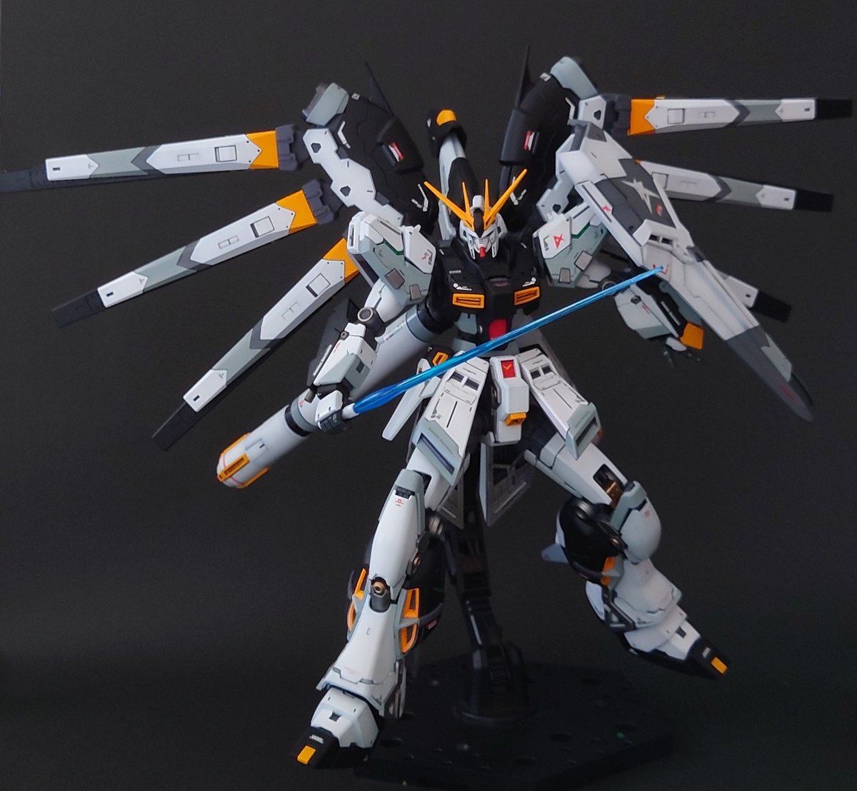 RG 1/144 Hi-νガンダム完成 (1) チョートク・ヨシタカさんの製作動画を参考に,νガンダムカラーで仕上げました。 仮組みせずに製作したため,色分け,組立とも苦戦しましたが,苦労の甲斐がありました,カッコいい!(自画自賛ですみません。) #ガンプラ #ハイニューガンダム #TOYラジ