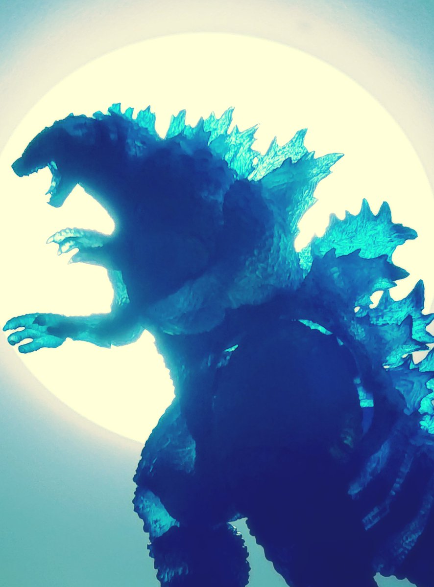 『ゴジラ キング・オブ・モンスターズ』のBlu-rayBOXについていたモンスターアーツ・ドハゴジブルークリア成型版を部屋天井照明をバックに撮影。少し加工してます。 #ゴジラ #夜のフィギュア撮影会 #フィギュア撮影友の会 #オモ写 #怪獣 #小さな巨大特撮