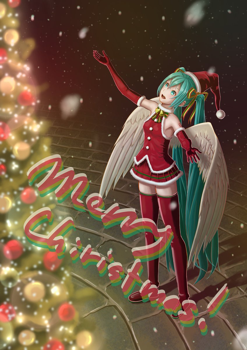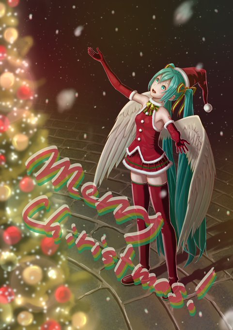クリスマスイラスト描きました。「雪が降ってきた」と喜ぶミクさん #初音ミク #イラスト好きな人と繋がりたい #絵描きさんと繫がりたい #サンタコス #イラスト pixiv.net/artworks/94664…