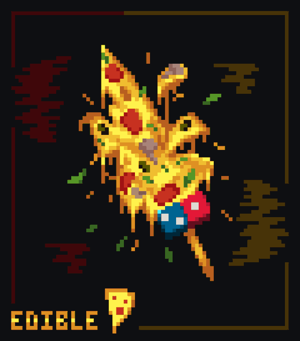 Pizza sword for #swordtember2022 05. Edible A little bit chaotic and messy, but tasty! he he :) #pixelart #ドット絵 #swordtember