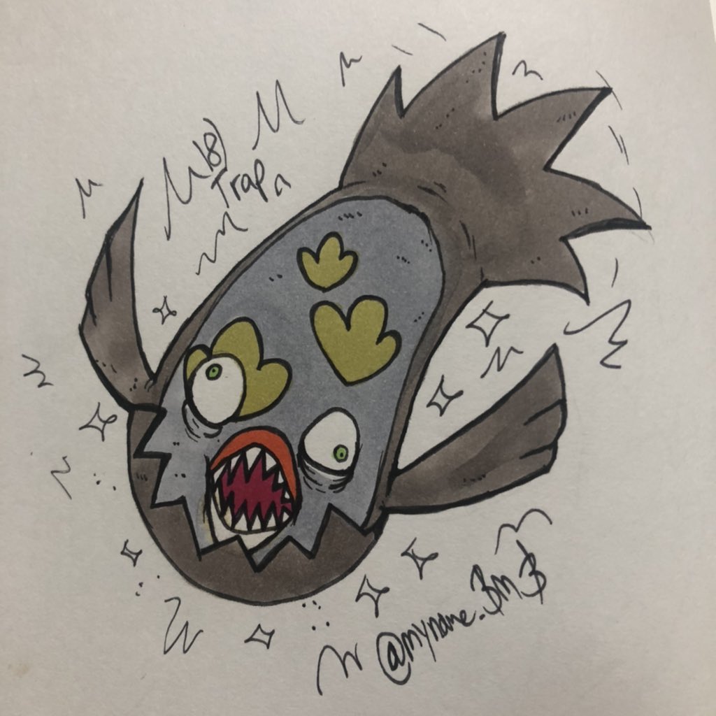 Inktober day 18 #inktober2020 #inktober #ink #pokemon #stunfisk #dumb #galarianstunfisk #galar #gen8 #metal #sketchbook