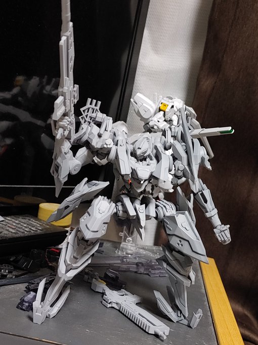 ワンフェスで販売予定の商品を紹介します! ③グングニール ¥15,000 ワンフェスで新発売する機体です。 武器はデュアルマシンガン、スナイパーライフルが付属します。 3Dプリント品、未組立、ジョイントパーツ別売りとなります。 #WF2023S