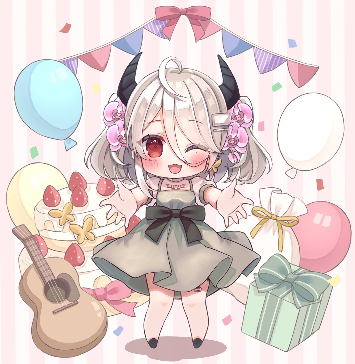リスナー様のご依頼でVtuber 夜永ひより様のSDイラストを描かせていただきました! ひよりさん1000人登録&2周年おめでとうございます🥳✨✨ twitter.com/Hiyo_Naga/stat…