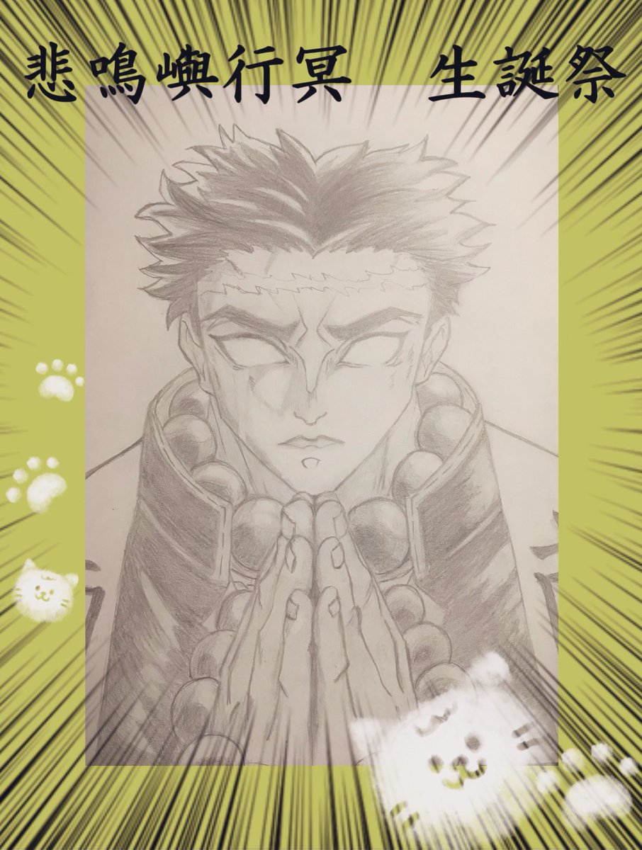 悲鳴嶼さんお誕生日おめでとうございます🎁🎉🎊 強くて、優しくて、頼りになる悲鳴嶼さん📿かっこいいです😭 さすが柱最強!!! 猫好き🐱って所も 可愛すぎるよね😭💕 お絵描きしました!! #悲鳴嶼行冥誕生祭2021 #悲鳴嶼行冥生誕祭2021 #鬼滅の刃イラスト #鉛筆画