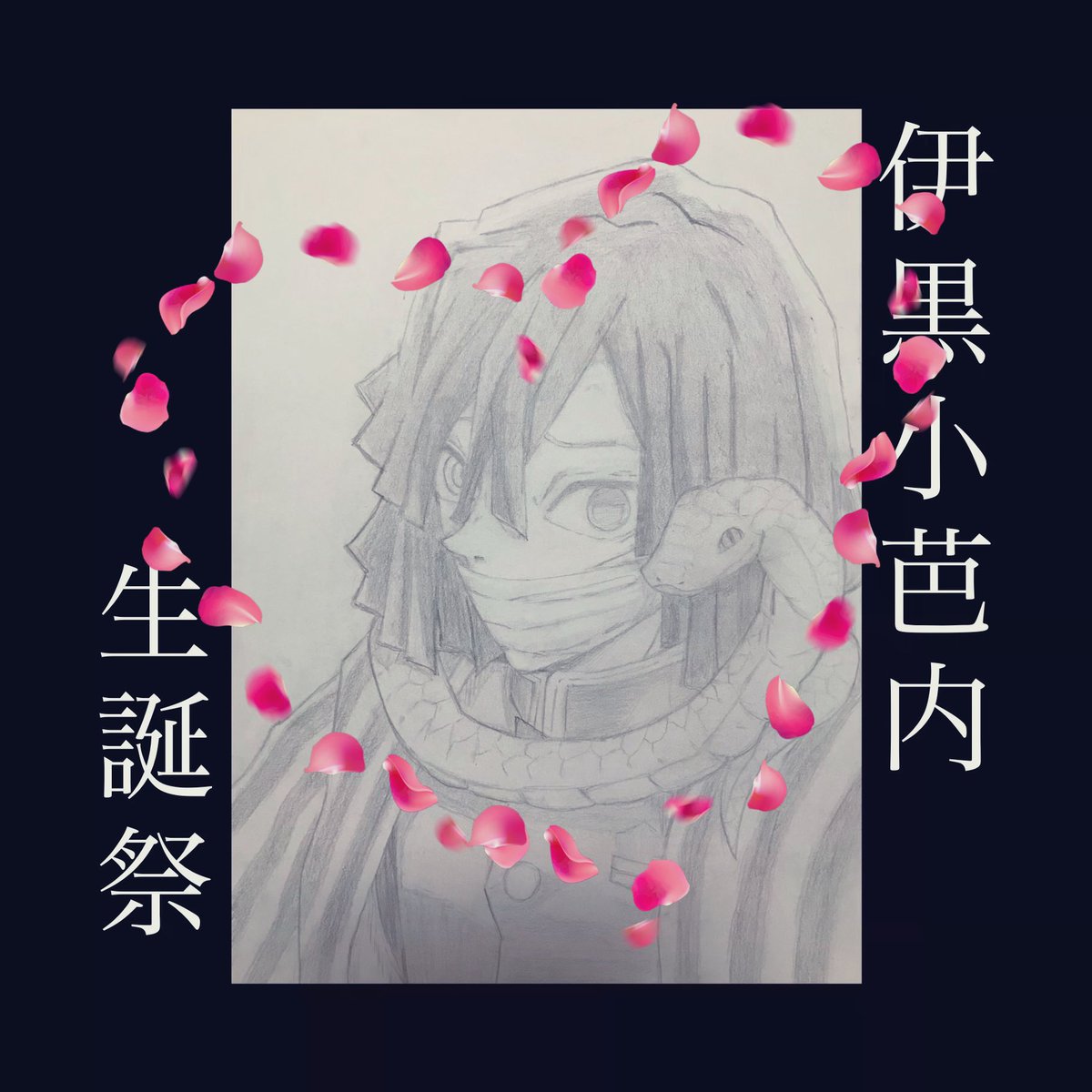 伊黒さんお誕生日おめでとうございます🎉🐍 一途で仲間想いなあなたは 本当に素敵💕 みつりちゃんとお幸せに😃 #伊黒小芭内生誕祭2021 #伊黒小芭内誕生祭2021 #鬼滅の刃 #鬼滅の刃イラスト