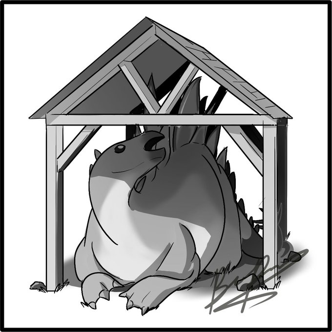 Day 13: roof Roofed lizard...under a roof..eyyy 😂😂😅 #dinosaur #inktober #inktober2021 @inktober #stegosaurus