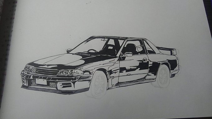 R32描いてます。 ホイールはBBSにしようと考えてます。 #R32 #イラスト好きな人と繋がりたい #ペン画 #日産 #やっちゃえNISSAN