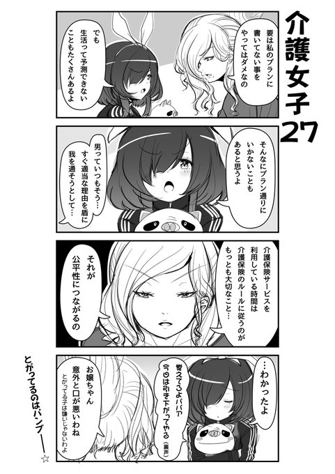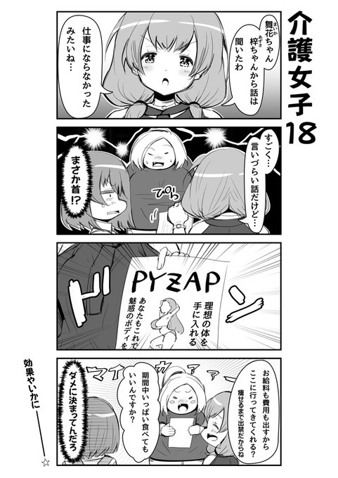介護女子 第18話 舞花の運命やいかに! 登場人物は一ノ瀬美咲、十夜梓、四方崎舞花です #漫画が読めるハッシュタグ #4コマ #4コマ漫画 #漫画 #オリジナル漫画 #介護 #福祉 #介護女子 #絵描きさんと繋がりたい #漫画好きさんと繋がりたい #冬の創作クラスタフォロー祭り