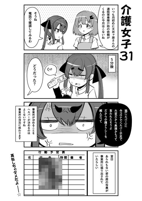 肝心の漫画を貼り忘れていました、すみません 介護女子 第28話 帰ってきたかなえを待ち受けていたものとは…!? 登場人物は、一ノ瀬美咲、七海かなえです。 #漫画が読めるハッシュタグ #4コマ漫画
