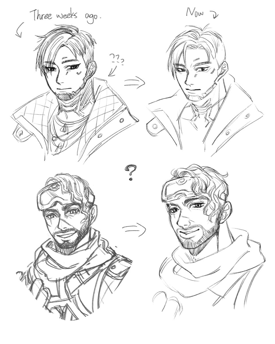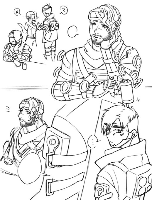 才看到有這幾張圖((遺忘很久# 時間過太久了想棄搞了放一些畫一半的地方吧! 原本想畫刻意裝冷漠看小暗有啥反應的惡作劇MI #ApexLegends #ApexLegendsFanart #Mirage #Crypto #ミラプト