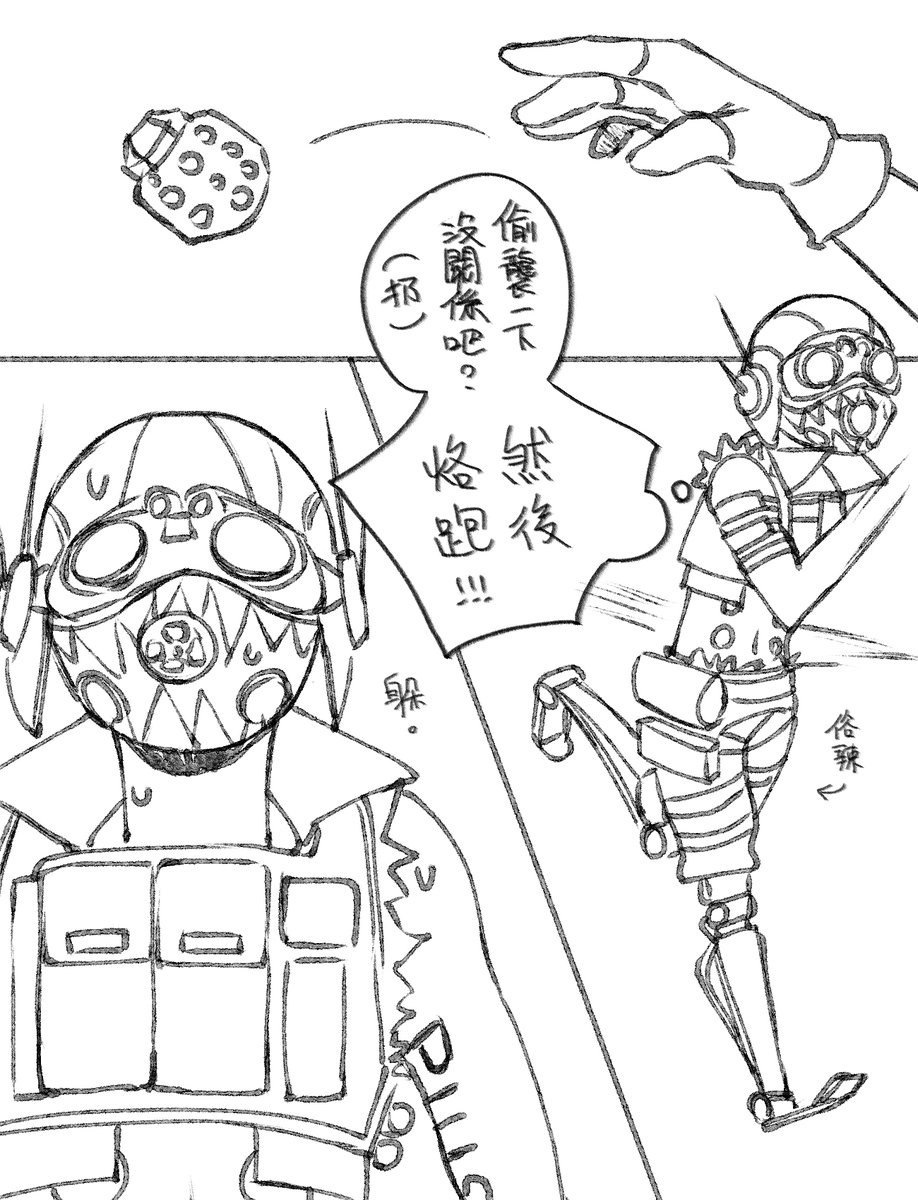 這是一個在某一場偷襲丟芭辣丟到紅甲流氓的故事。(長 當時真的太驚恐了我必須畫下來QWQ 看到紅甲的瞬間我真的絕望了😂 (3/5) #ApexLegends #ApexLegendsFanart #Crypto #Octane