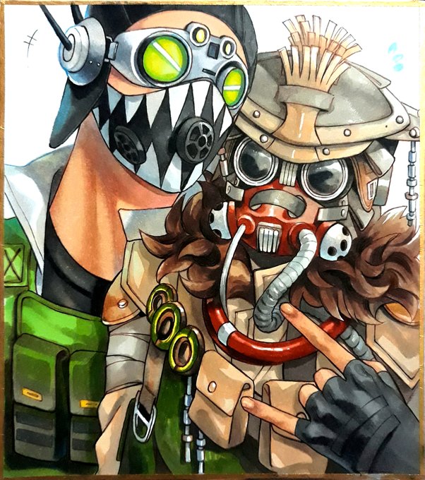 ミラプト(2/8) 我終於摸完...🤪((摸很久# 每次都在小暗蹲著的時候放幻象的me就很想畫這個w 前兩張比較早畫後面比較穩www #ApexLegends #ApexLegendsFanart #Crypto #Mirage