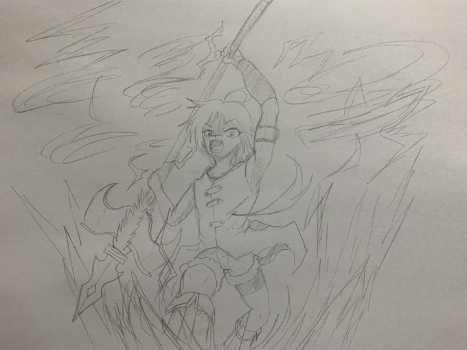 これはグルナードの専用武器 「マトリクスカリバー」と 俺の物語「テイルズオブニューワールド」で重要な「マトリクス」 #テイルズオリキャラ #イラスト好きと繋がりたい #そらみのお部屋 twitter.com/bu3fksnsr30men…