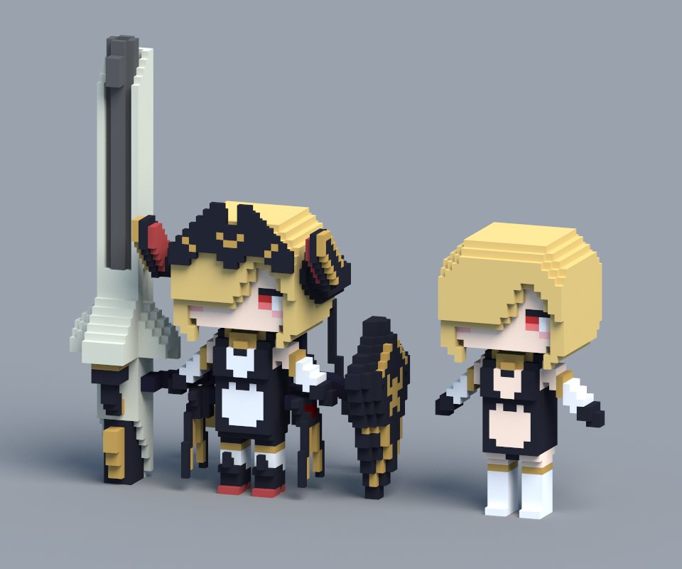 Voxel characters - Magical Baselard from Frame Arms Girl x Megami Device. Character design by @humikane Magical Baselard will be released on April 2022. #FAガール #フレームアームズ・ガール #メガミデバイス