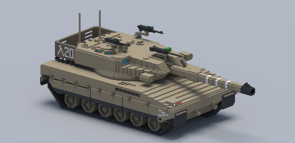 Main battle tank in Voxel #4. Motivated from Israel's Merkava. Merkava also means "Chariot" in Hebrew language. Made with #MagicaVoxel 0.99.6.3 Vertex: 31,446 / Edge: 48,559 / Faces: 21,454 / Tris: 21,454 Took 4 Hrs 37 Mins. #voxelart
