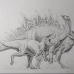 Ceratosaurus are preying on Stegosaurus.Imitated 山本聖士 's style.#prehistoric #dinosaurs #paleoart #ceratosaurus #Stegosaurus