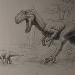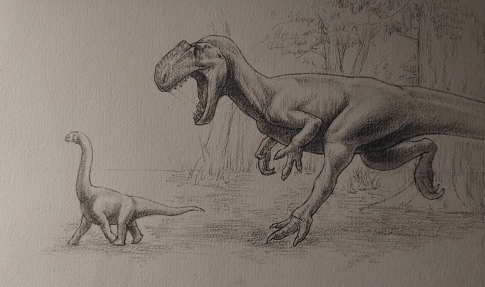 Monolophosaurus chasing Klamelisaurus.And a roaring monolophosaurus.#paleoart #dinosaurs #monolophosaurus
