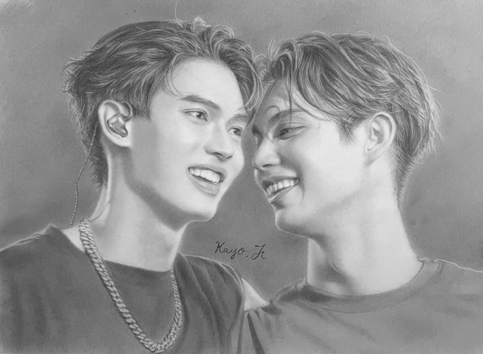 タイ本国での映画公開おめでとうございます!🎉 今日は、日本でも一緒に楽しめますね!😊 ・・・楽しみ過ぎて仕事はうわの空😂 タイ版ポスターを模写してみました~✏ #映画2gether凱旋上映 #2getherthemovie #bbrightvc #winmetawin