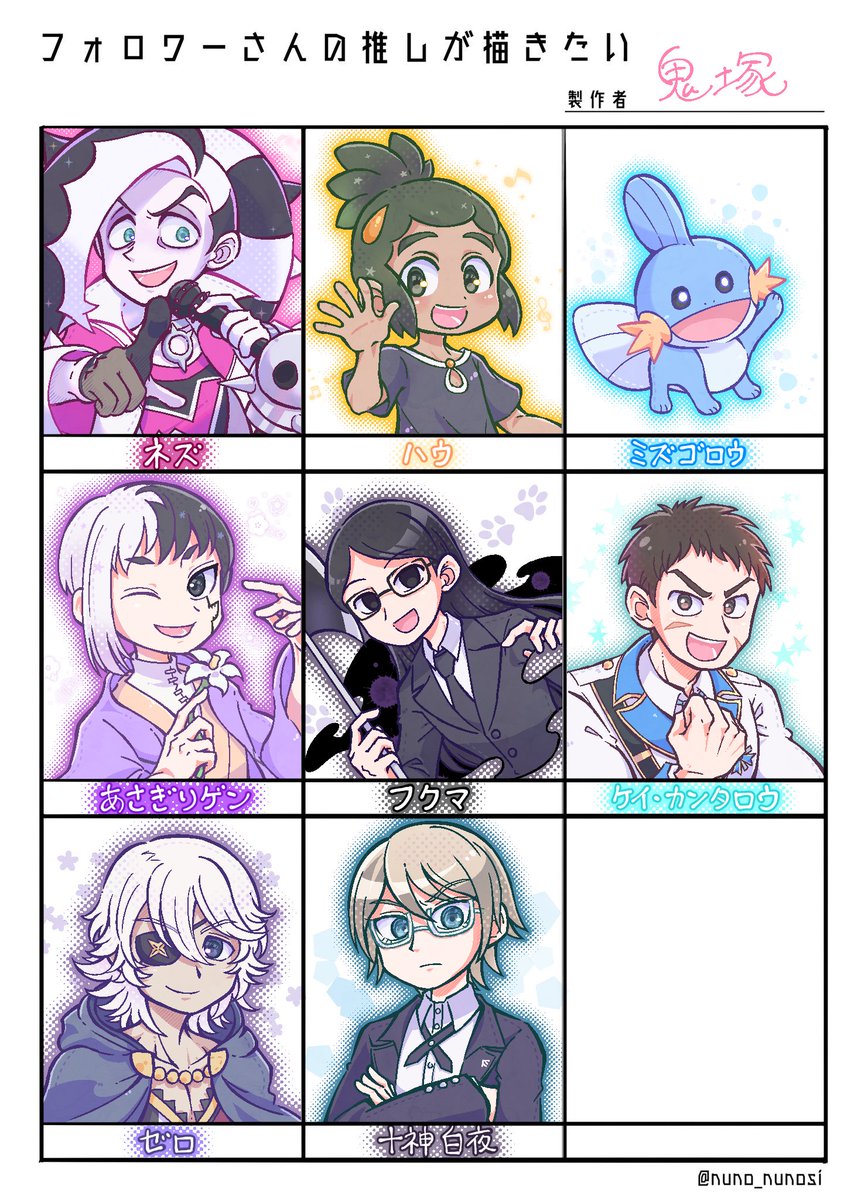 久々にいろんなタイプのキャラ描けて楽しかったです~ありがとうございました! #フォロワーさんの推しが描きたい