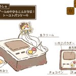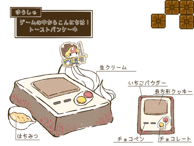#コンパスカフェメニューコンテスト2022 ・かけだし勇者 『ゲームの中からこんにちは! トーストパンケーキ』 勇者くんのゲーム機をモチーフに そのゲームから飛び出したようなトースト型のパンケーキ 応募規約に同意しました
