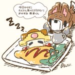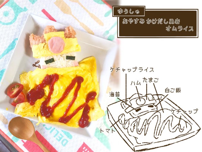 #コンパスカフェメニューコンテスト2022 ・かけだし勇者 『おやすみ かけだし勇者オムライス』 たまごに包まれて眠る勇者くんのオムライス スヤスヤ眠って元気にバトルして欲しいです! 応募規約に同意しました
