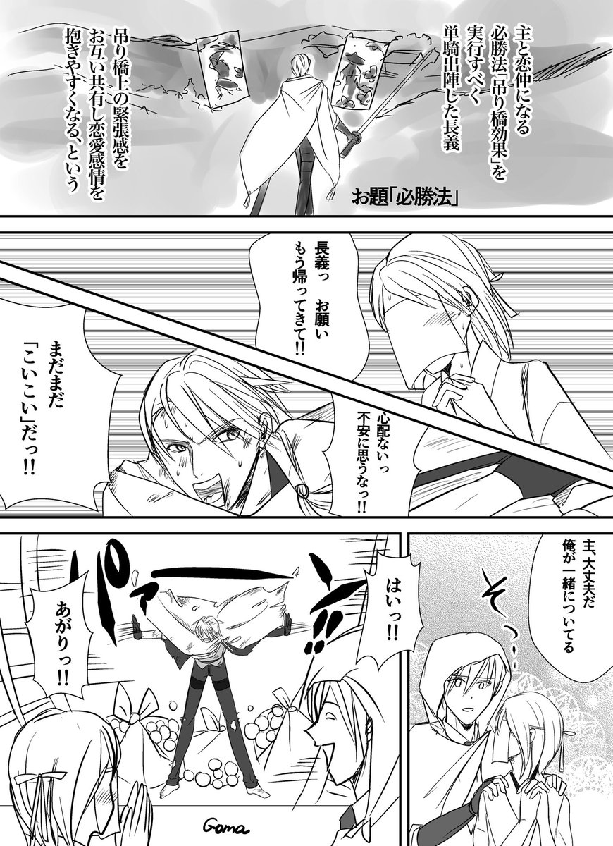 #W山姥切と女審神者版60分一本勝負 開催ありがとうございます‼︎ お題「必勝法」 審神者ちゃんとどうしても恋仲に発展したい長義。 不安でドキドキを強く感じる場所に本人同士一緒にいないと意味ないですよね