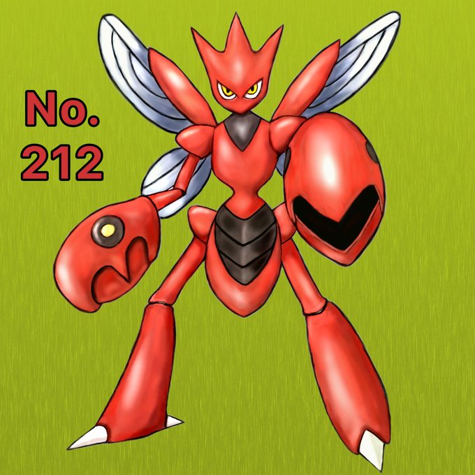 この前描いたハッサム色味薄過ぎと気付いてフィルター掛けたら多少マシになってくれた お絵描き難しい😇 #ポケモン #アイビスペイント
