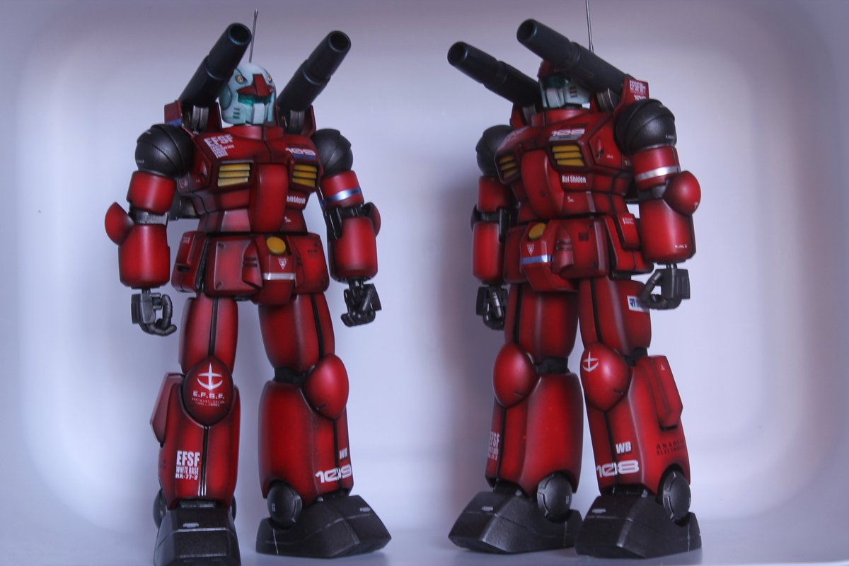 皆さんおはようございます 週末がやってきました ガンキャノンを白バックで撮りました 108と109で基本的な物は同じデカールにしましたが部分的にカイとハヤトの個性?を分けるべく独自なデカールを作って貼ってみました この写真でもいくつか違います #ガンプラの画像を貼るとRTされると聞いて