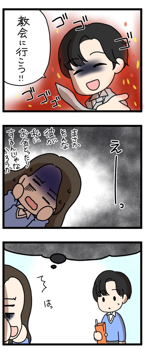 【彼氏と別れた理由は信仰でした】4話 毎週土曜日朝7時に公開中! ウェプトゥーン漫画風に縦読みしたい方はこちら↓ bacondanshaku.blogspot.com/2022/03/4.html (1/4)