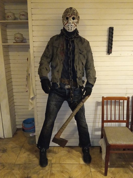Мистер Джейсон удивленно застыл на кухне, то ли меня увидел, то ли варенье воровал... #cosplay #jason #fridaythe13th #косплей #пятница13 #jasonvoorheescosplay #fridaythe13thcosplay