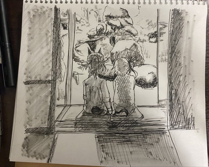 0 3 少し前に描いたスズカさんとキング誕生日のやつ #このタグを見た人はラフ画とその完成絵を見せる 23/05/19 13:07