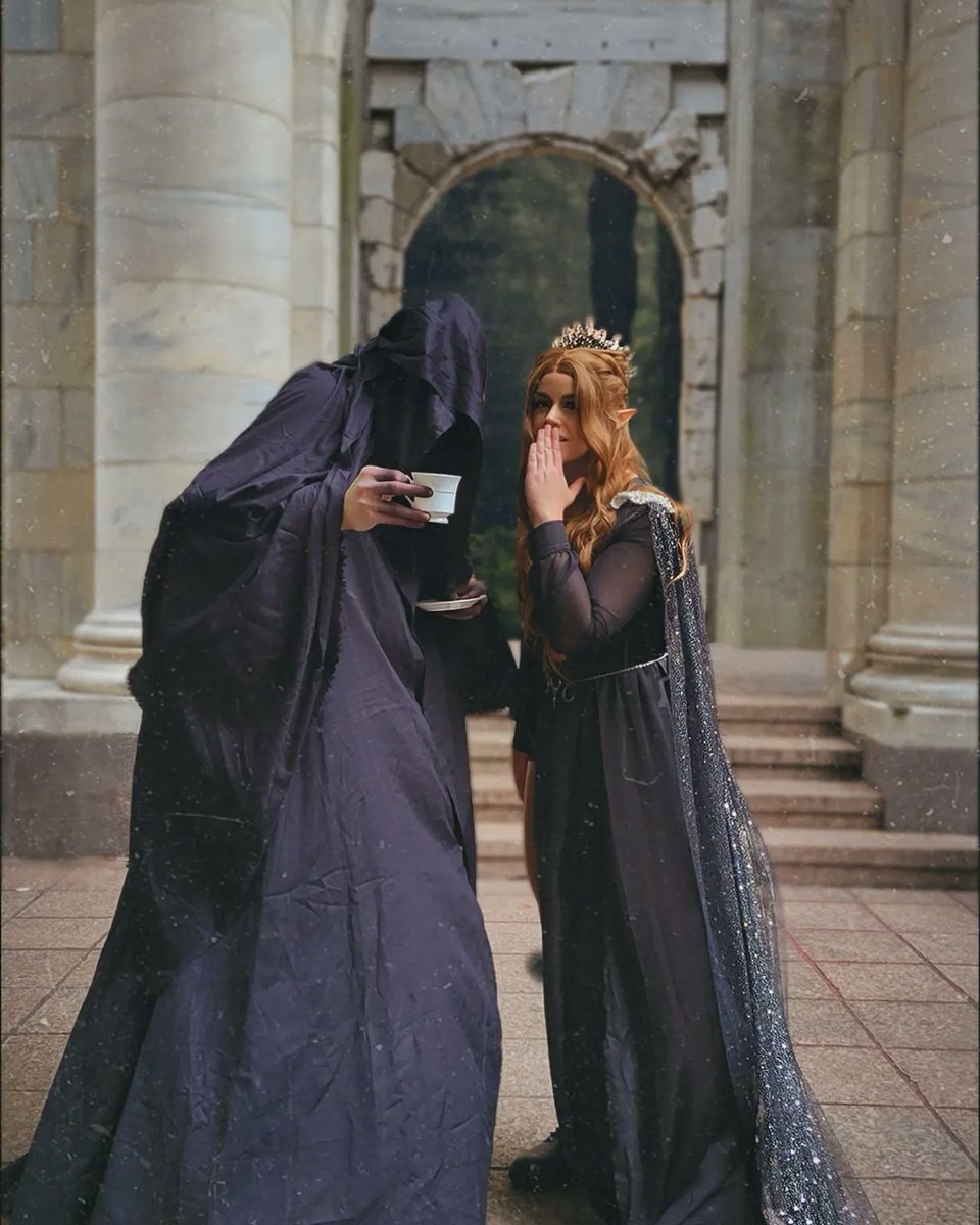 Okay, spill the tea 🍵 I met the Suriel at #DragonCon2022 and my lil faery smut heart grew two sizes! @DragonCon #feyrearcheron #highlady #sarahjmaas #acotar #suriel #cosplay