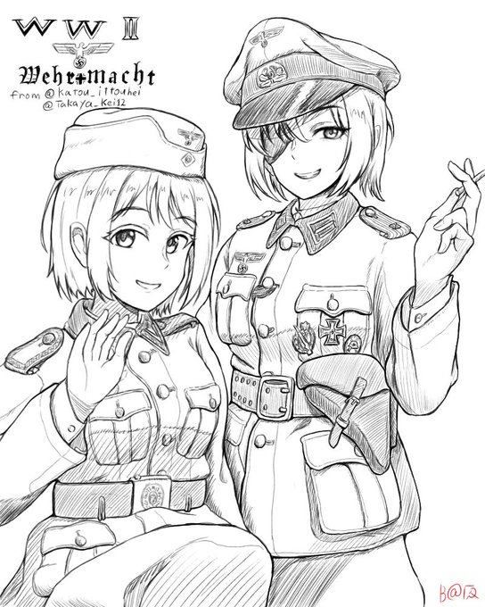 @katou_ittouhei さんのルイーゼ伍長と @Takaya_Kei12 さんの陸軍将校を手癖で描かせていただきました!