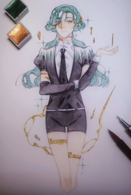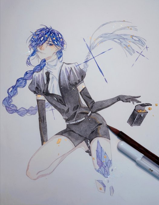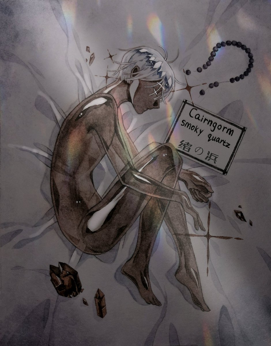 给弗洛宝贝补个全身图🌌 由于黄铁矿会在所有的表面定义上生长,一旦过度使用黄铁矿产生裂隙,在裂隙中会加速生出更多的黄铁矿导致不可避免的自裂 #絵描きさんと繋がりたい #創作宝石 #hnkoc