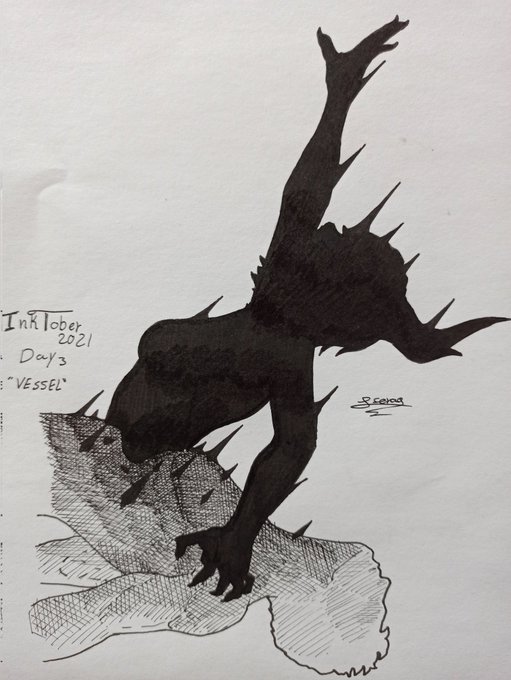 "Vessel" Day 3 #inktober202 A quick inking sketch of an idea I had for the word Hope you enjoy the drawing ❤ #black #drawing #sketch #myart #myartstyle #ink #vessel #pain #halloween #spooky #art #traditionalart #inktober #demon #oc #illustration #split #thorns