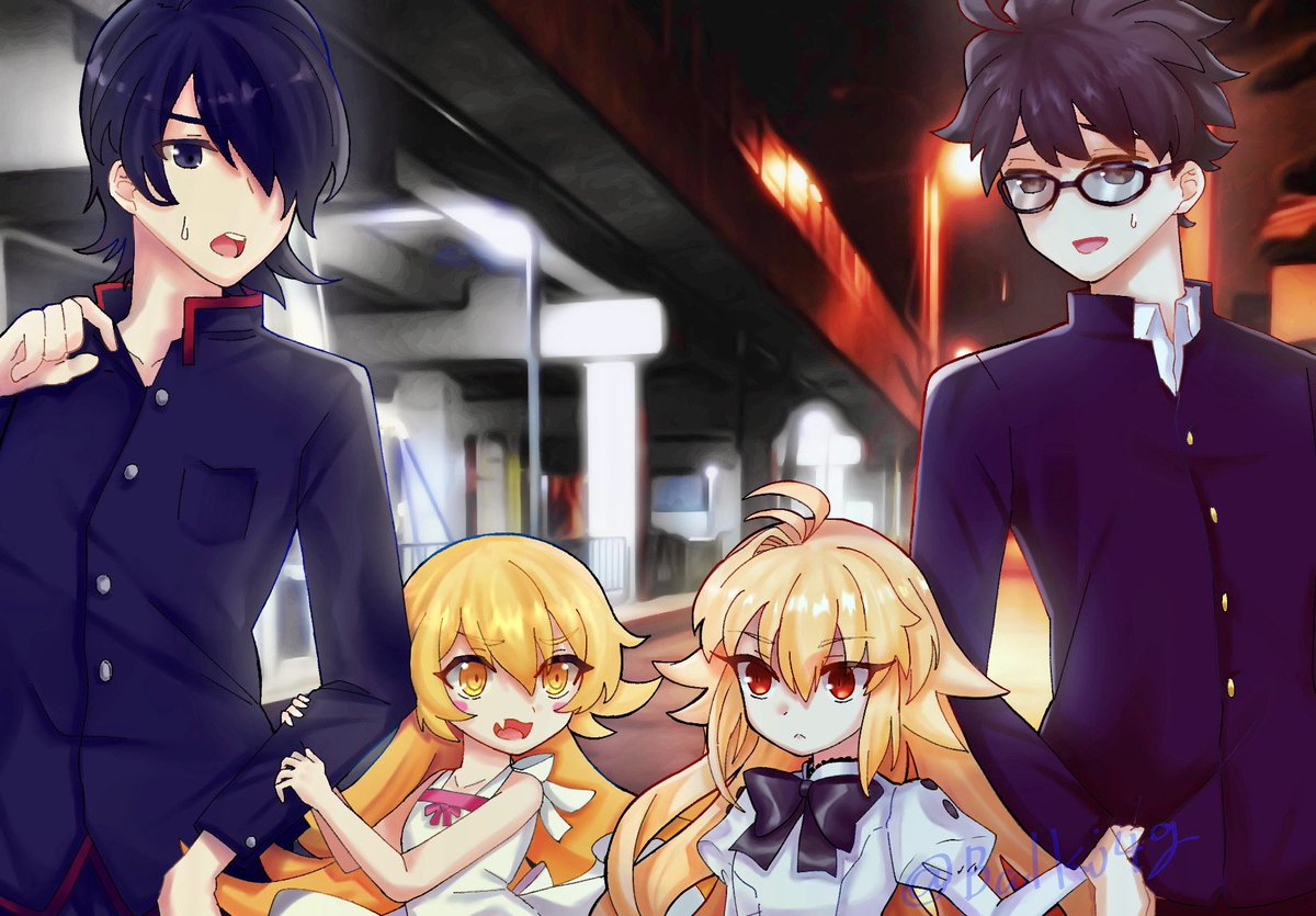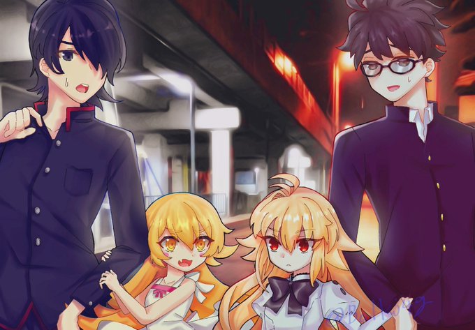 55 100 月姫リメイクの志貴×エコアルク 化物語の阿良々木×忍 のクロスオーバー描きました💪 #月姫リメイク #月姫 #化物語 21/09/12 12:01