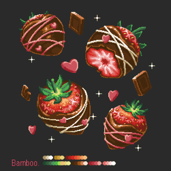 It's Valentine's Day, so I thought of chocolate-dipped strawberries 💖🍓🍫 #Pixelart #foodillustration