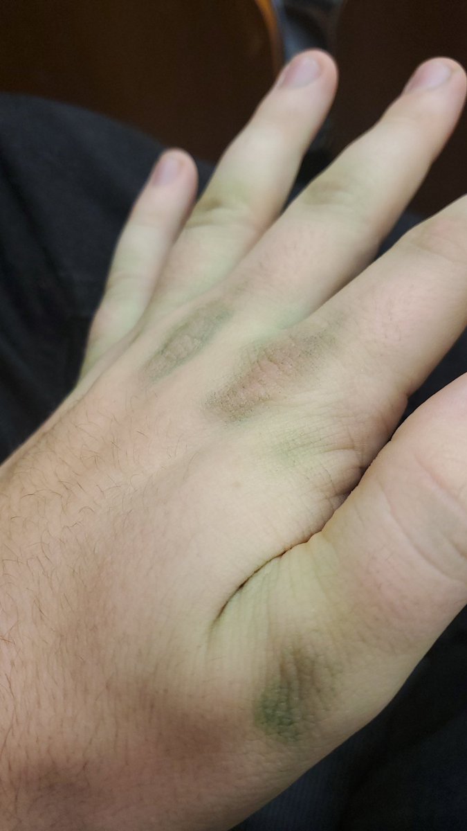 Hey #cosplay people. For Halloween I used @SpiritHalloween's grease paint. It was coming off on everything, kept coming off all over the place and was a bitch to get off. My hands are still green. Is there a better makeup I should be using or what should I do in the future?