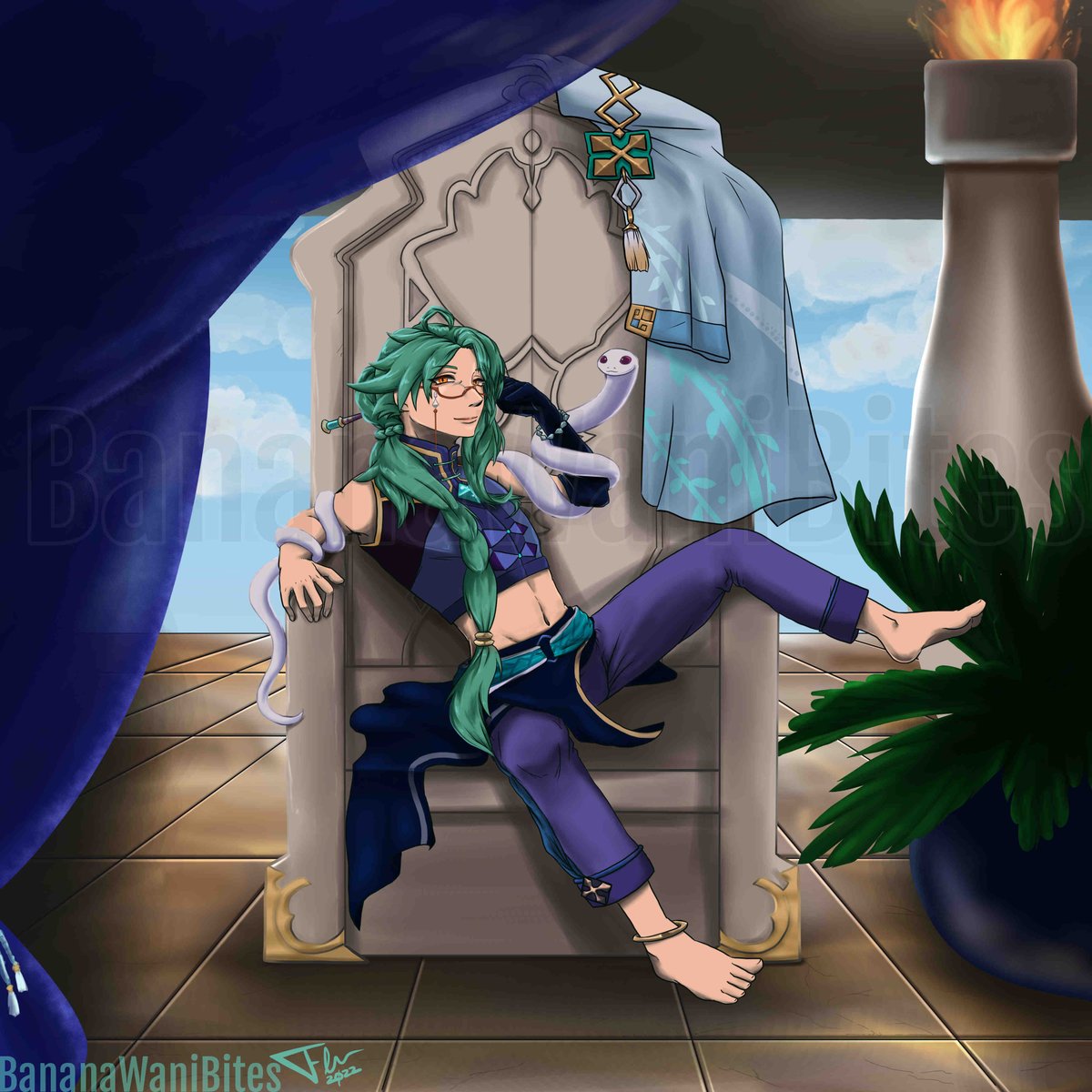 Another art commission for TTV QueenBowie done~ Thank you again 💚 #genshin #cyno #digitalart #artcommission