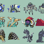 Not that I wanna be known specifically as a fakemon artist but I do think I did quite well designing the fakemon in this commission. Each of these guys have roots in the Cthulhu Mythos. #Pokemon#fakemon#pixelart