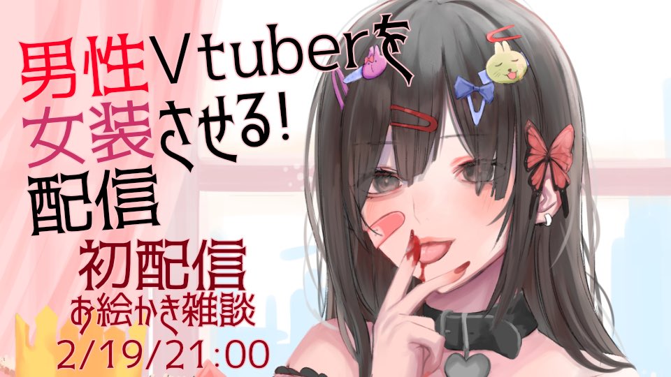 依頼絵の息抜きに男性VTuberを女装させる配信の続き描いてた!