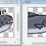変身前(上)と変身後(下)。いっぱいドット打ちました。
