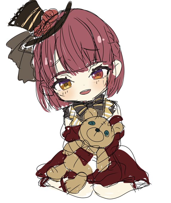 1 6 ちびキャラで。 綺麗にします。くまちゃんを抱いているというのはおはぎさん(@ohagi_0909 )という神が仰っていたのを見て抱っこさせました…アーメン #マリンのお宝 23/02/16 00:04