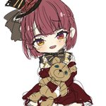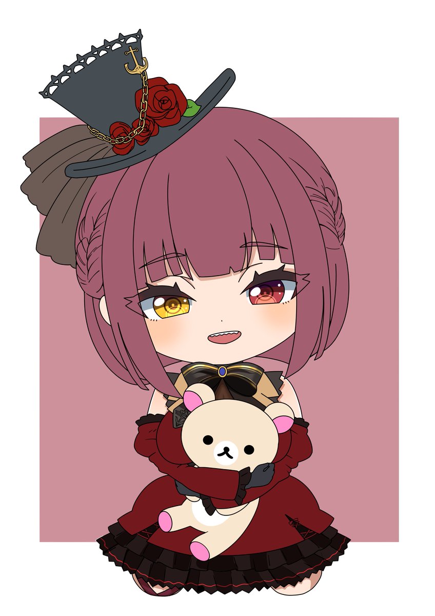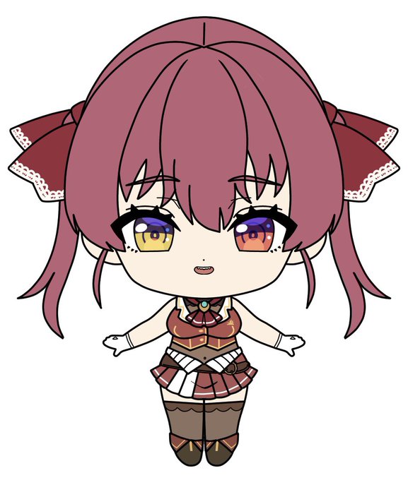 ちびキャラで。 綺麗にします。くまちゃんを抱いているというのはおはぎさん(@ohagi_0909 )という神が仰っていたのを見て抱っこさせました…アーメン #マリンのお宝