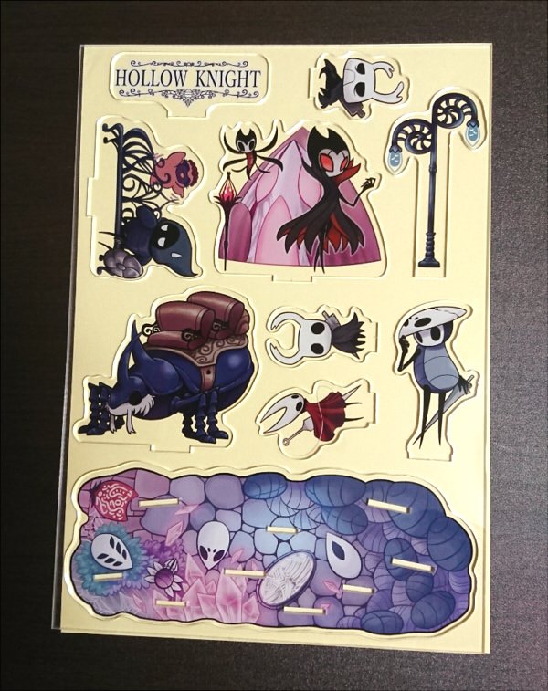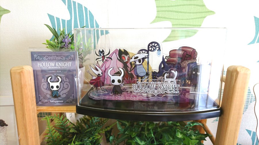 #HollowKnight のアクリルジオラマ届いた~!!テンション上がる 土台部分にはゲームでの探索の想い出をいろいろ散りばめました 試作品制作のかいあってだいたい予想通りの配置仕上がりに!