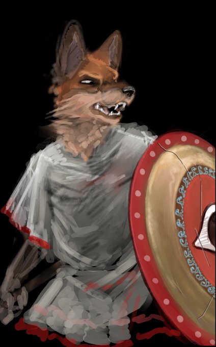 Fox hoplite I did on the plane, he’s supposed to be Italic