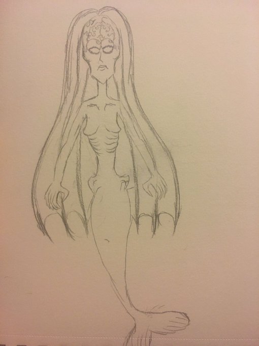 Thinking about maybe doing #Inktober this year again but not sure yet. I know day 1 is fish so I had this idea of a creepy mermaid, I tried based it off of the Barrelleye fish. But again still not quite sure. #sketch #sketchbook