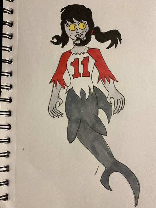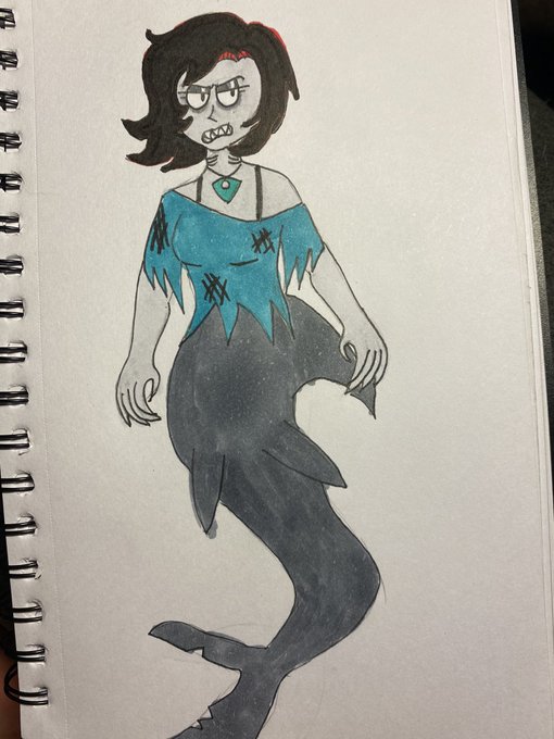 Sorry this is late but happy #mermay! Lorelei if she was a mermaid, although as a child it was her childhood dream to be one. However if in an AU she would've been a cranky shark mermaid. #mermay2022 #drawing #inkdrawing