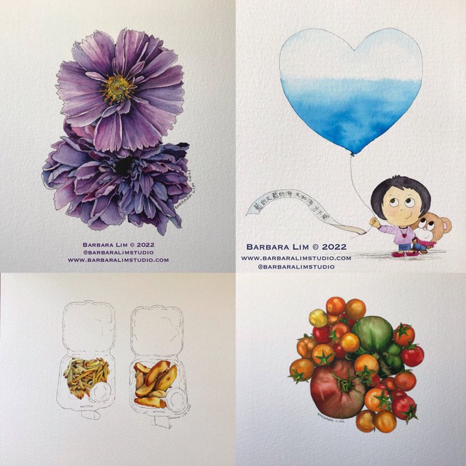 ⭐️ Hello #PortfolioDay ⭐️ My name is Barbara🎨I’m a watercolour artist🎨Love painting flowers, fries, veggies + Violet🎨Currently listed on the Alameda county artist registry🎨Would love to work on book covers + stationery🎨 barbaralimstudio.com instagram.com/barbaralimstud…