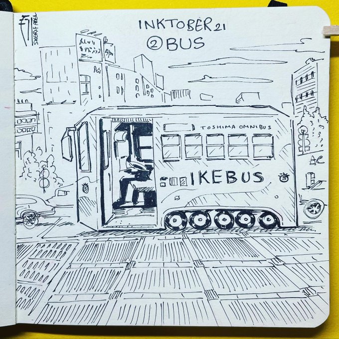 #Tokyober (2) Bus. Special bus with an interesting design that I saw in Ikebukuro. #inktober2021